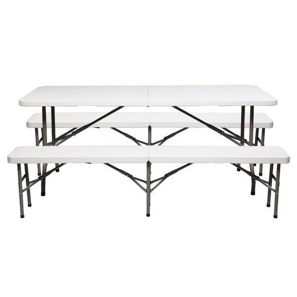 The 6FT Outdoor Courtyard Foldable Bench is perfect for outdoor party, picnic, camping, wedding and more. It is constructed with a polyethylene top and a sturdy tubular steel frame and legs to offer high strength, water resistance, fire retardance and durability. It can be folded and extended easily provide enough space to your guests and save room for storing it under a bed or in a closet. Rubbers on the legs prevent your floor from scratches or any damage. Don't hesitate to order now!
